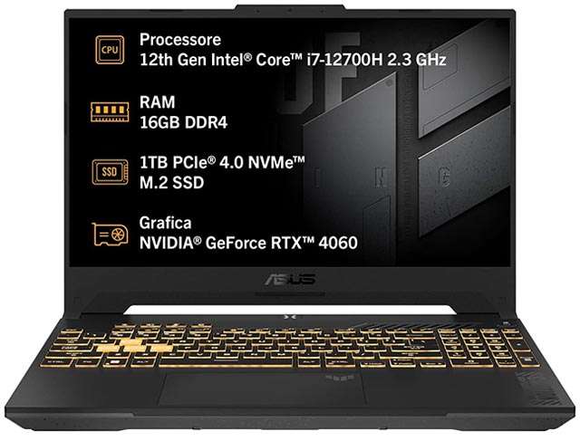 È invece in vendita al prezzo di 1.499 euro, con una significativa riduzione, il modello ASUS TUF F15 FX507ZV4. Ottime le specifiche tecniche: schermo da 15,6 pollici, processore Intel Core i7-12700H, 16 GB di RAM, SSD PCIe da 1 TB, scheda video dedicata GeForce RTX 4060 (8 GB GDDR6).