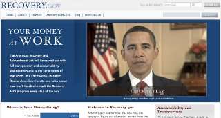 Ad accogliere i visitatori sulla homepage di Recovery.gov è un video dello stesso neo-presidente, che spiega obiettivi e modalità di erogazione dei finanziamenti collegati all'”American Recovery and Reinvestment Act” appena approvato. “Le dimensioni e la scala di questo piano richiedono sforzi senza precedenti per sradicare le abitudini collegate agli sprechi, alle inefficienze ed agli impieghi inutili di danaro” dice Obama guardando fisso in camera. “In luogo di avere politici che si scambiano denaro dietro porte chiuse, auspichiamo che le decisioni riguardanti l’impiego dei soldi dei contribuenti avvengano sotto il vostro sguardo vigile”.