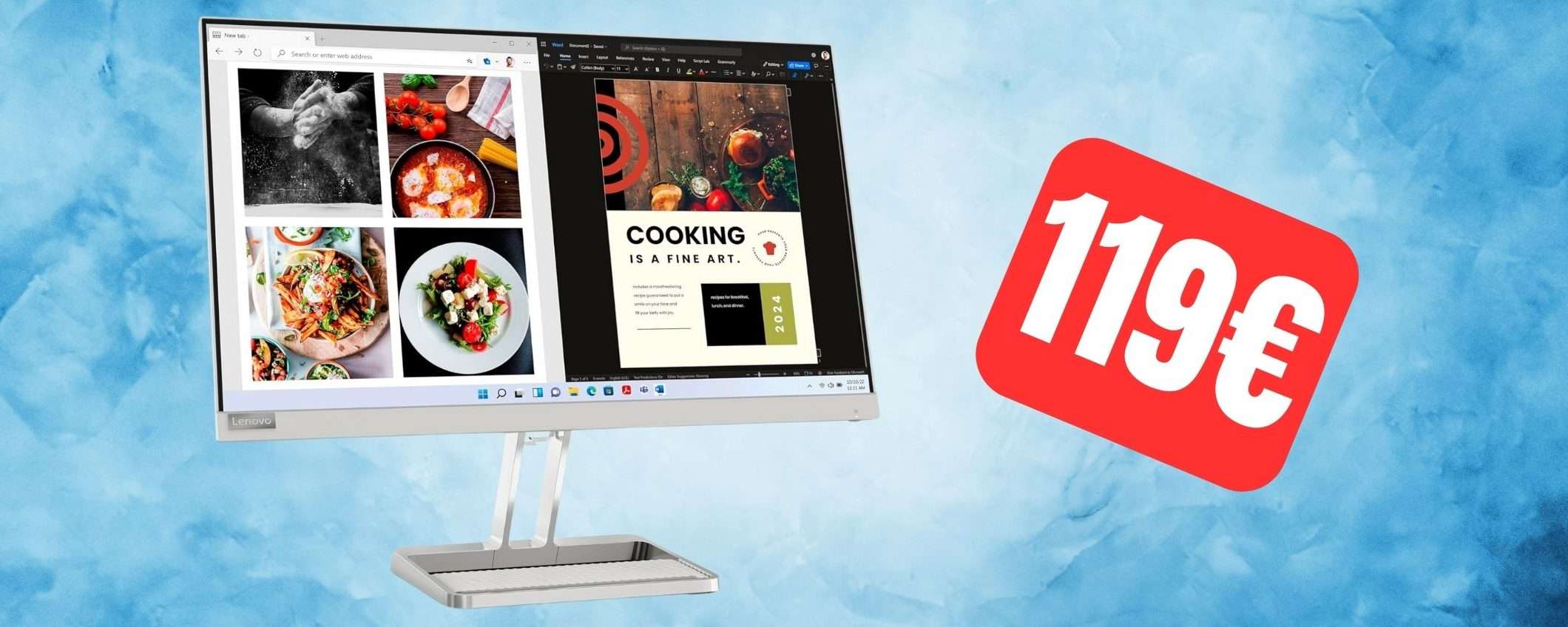 Approfitta dell’opportunità e acquista questo monitor Lenovo da 23.8 pollici a soli 119 euro: i pezzi rimasti sono pochi, ti consigliamo di affrettarti.