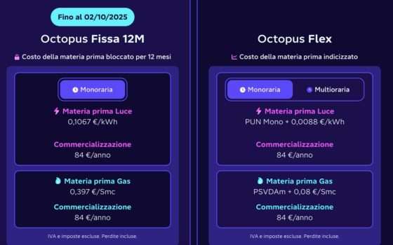 Chi preferisce seguire l’andamento del mercato può optare per Octopus Flex, con costi indicizzati: