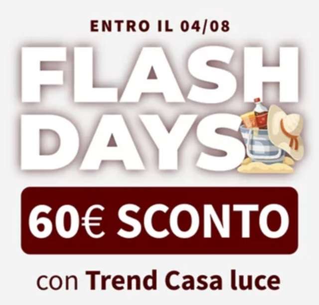 Se si è alla ricerca di una nuova offerta luce, segnaliamo la promozione in corso sul sito ufficiale di Eni Plenitude: grazie ai Flash Days, è possibile beneficiare di uno sconto di 60 euro sull’offerta Trend Casa luce. La promozione è valida fino al 4 agosto passando da un altro fornitore, con lo sconto dilazionato in bolletta in dodici mesi (pari a 5 euro al mese).