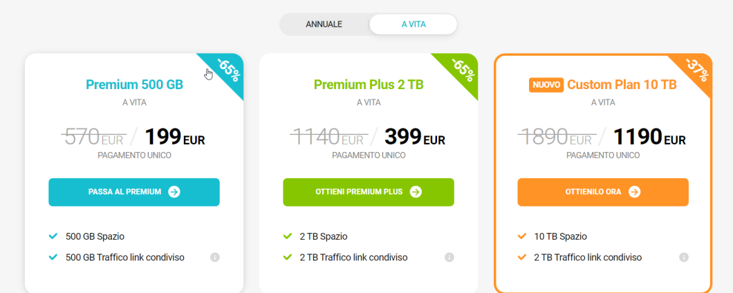 - Premium Plus 2 TB: a soli 399€, perfetto per chi ha bisogno di più spazio per custodire una quantità maggiore di dati importanti.