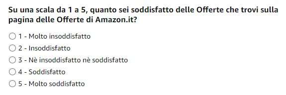 Non si tratta di un sondaggio pensato a fini di profilazione (Amazon chiede anzi di evitare informazioni sensibili tra le risposte), ma per avere una fotografia generale e sommaria della percezione delle offerte da parte della propria utenza: