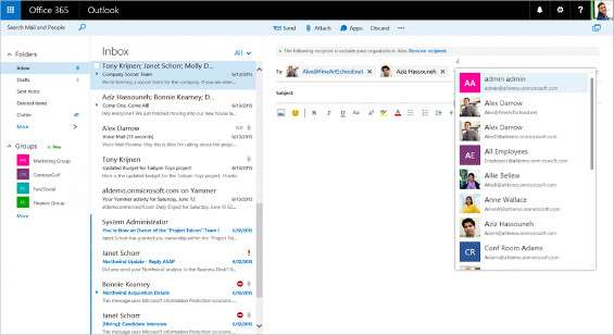 Per quanto riguarda invece la composizione delle email, Outlook on the web promette strumenti per la modifica delle immagini ed emoji, e una soluzione per suggerire l’indirizzo dei contatti che si aggiorna sulla base degli indirizzi più utilizzati.