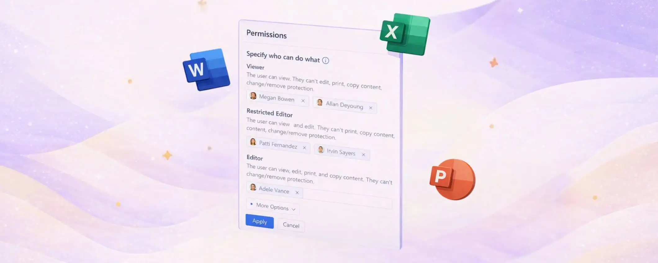 Word, Excel e PowerPoint sul web ora supportano l’applicazione e la modifica delle etichette di riservatezza (sensitivity labels) con permessi utente personalizzati, la stessa funzionalità disponibile nelle app desktop. Quando si aprono le impostazioni Permessi su Office sul web, si ritrova la stessa esperienza del desktop.