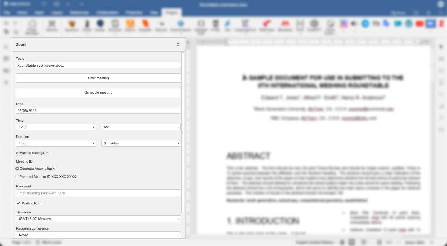 Una volta entrati nel proprio account Zoom, sarà possibile creare o programmare una riunione il cui nome predefinito sarà il medesimo del documento. Nel giorno e all’ora impostata, il documento diventerà la riunione e la riunione diventerà documento: una commistione reciproca e profonda, per portare più cervelli attorno al medesimo obiettivo o per redigere un recap istantaneo sull’oggetto della discussione.