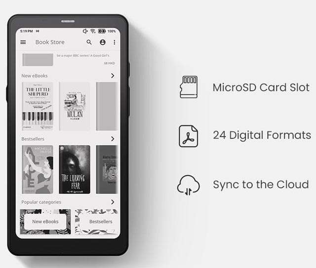 Sul fronte software si segnala invece la presenza di Android con accesso allo store Google Play per il download delle applicazioni, senza dimenticare l’integrazione con i servizi Google Drive, OneDrive e Dropbox. È garantito il supporto a 24 formati popolari come cui EPUB, MOBI, TXT e CBR.