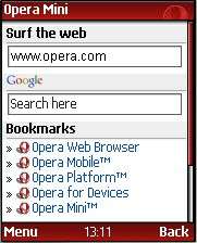 Opera Mini permette poi di creare una lista di indirizzi preferiti, richiamare pagine dalla cronologia, impostare una pagina d’avvio e utilizzare il motore di ricerca Google direttamente dall’interfaccia del programma.