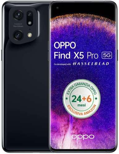 Il “fratello minore” Oppo Find X5 ha invece uno schermo AMOLED da 6,55 pollici (2400×1080 pixel a 120 Hz), processore Snapdragon 888, 8 GB di RAM, 256 GB di storage, fotocamere posteriori da 50, 50 e 13 megapixel, fotocamera frontale da 32 megapixel, connettività Wi-Fi 6, Bluetooth 5.2, GPS, Galileo, NFC, LTE e 5G. È disponibile su Amazon a 899,00 euro (sconto di 100,99 euro).