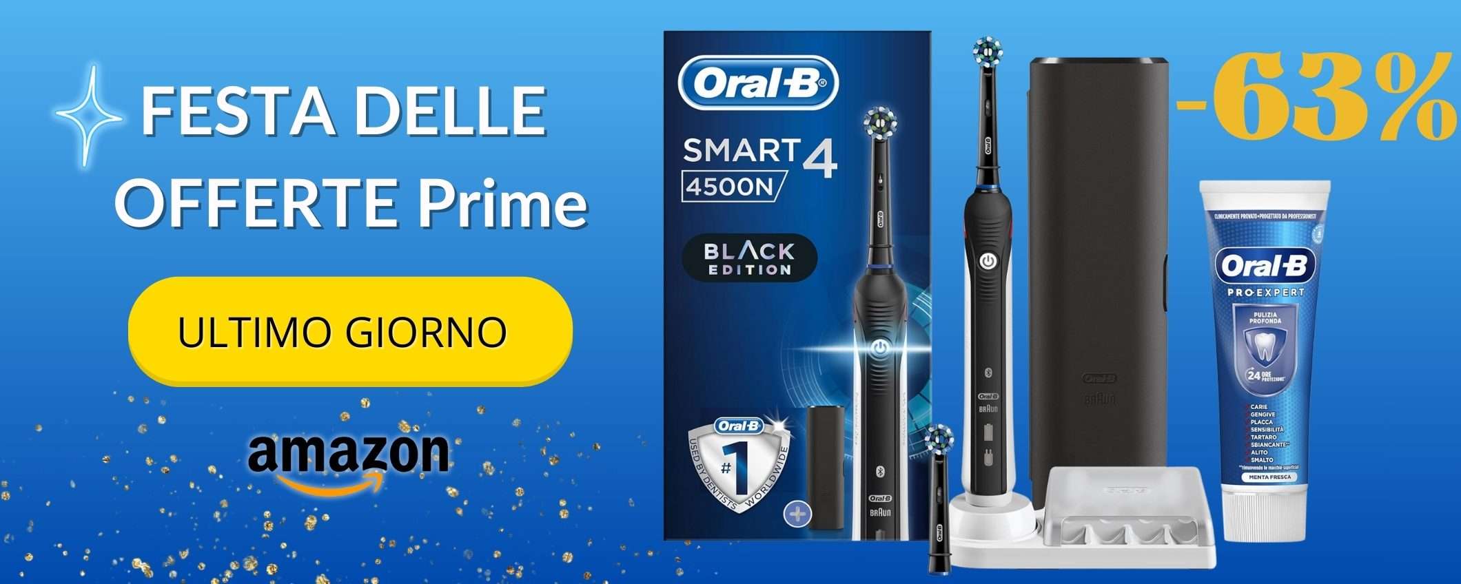 A soli 49,99€ su Amazon, Oral-B Smart 4 4500 è l’acquisto del giorno. Approfitta del 63% di sconto e completa l’acquisto al volo visto che si tratta di un’offerta a tempo: le scorte sono estremamente limitate.