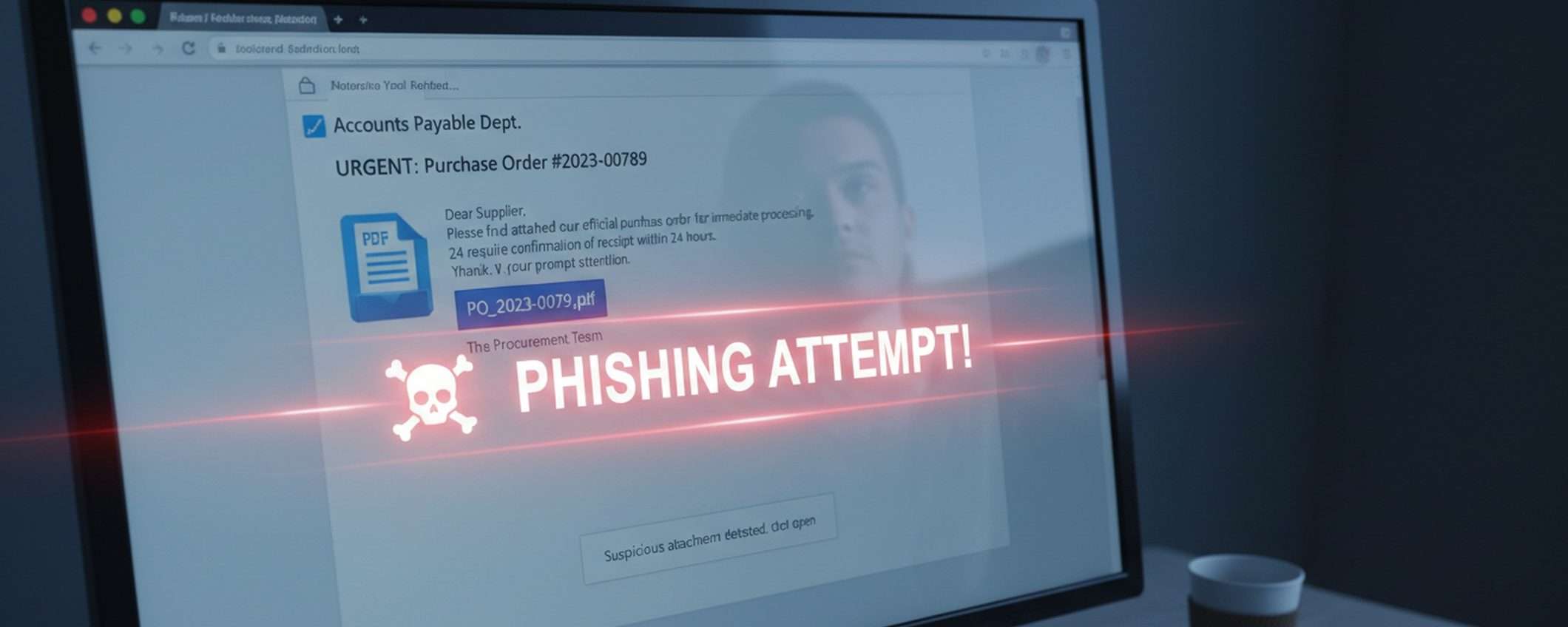 I responsabili delle vendite e della contabilità ricevono centinaia di email al giorno. Una di esse è un ordine di acquisto piuttosto dettagliato. Il cliente vuole conoscere tutti i dettagli su un prodotto, tra cui il prezzo e i tempi di consegna. In allegato all’email c’è un file PDF o almeno così sembra dall’icona. In realtà, il file ha una seconda estensione HTML, oltre a PDF.