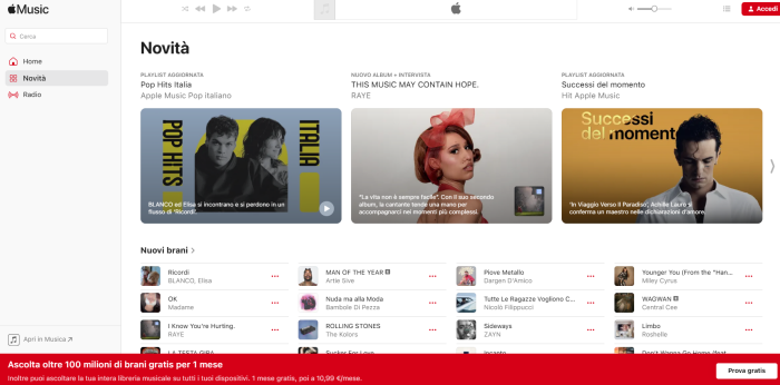 Se non si è acquistato un nuovo dispositivo ma non si ha mai utilizzato Apple Music, c’è comunque a disposizione 1 mese free. Basta iscriversi per la prima volta al servizio.
