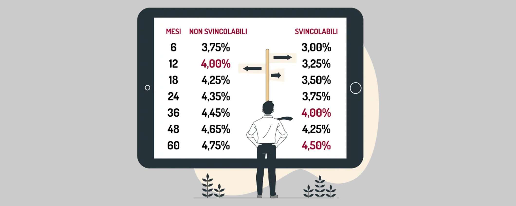 Richiedendo ora il conto, beneficerete di una remunerazione del 2,5% fino al 31 marzo 2024. Oltre a ciò, Key vanta anche il conto deposito migliore attualmente in quanto a variabilità di tassi di interesse e periodi. Si può scegliere infatti tra 6, 12, 18, 24, 36, 48 e 60 mesi dal 3% al 4,50% svincolabili o dal 3,75% al 4,75% non svincolabili, per giacenze minime di 5000€.