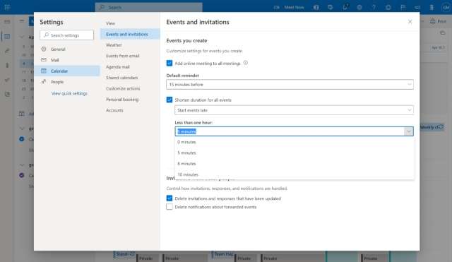 Dalla scorsa estate è disponibile un’impostazione che consente ai singoli utenti di scegliere una durata inferiore per i meeting. Ora è stata aggiunta un’opzione per ottenere lo stesso scopo a livello di organizzazione e per creare una pausa tra le riunioni. È possibile ad esempio scegliere un break di 5 minuti prima di tutti i meeting da 30 minuti o un break di 15 minuti dopo tutti i meeting di un’ora.