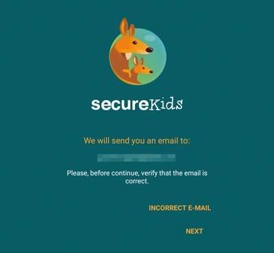 Tocchiamo Next e inseriamo indirizzo e-mail e password dell’account creato sul sito SecureKids. Nel caso in cui non ci fossimo ancora registrati, l’app ci consentirà di farlo direttamente dal dispositivo, ma anche in questo caso dovremo prima attivare l’account via e-mail.
