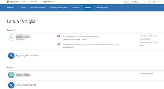Le funzionalità per la famiglia progettate da Microsoft offrono ai genitori la possibilità di avere un controllo completo su ciò che i figli possono fare o non fare con il computer o Internet. Non occorre installare software aggiuntivi, ma solo creare un account Microsoft per ogni membro della famiglia: i genitori avranno un account Amministratore, mentre ai figli sarà associato un account limitato.