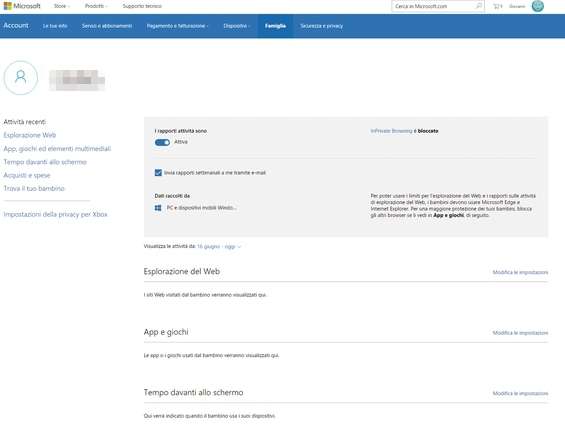 Questo sistema ci consente di monitorare da remoto le attività quotidiane di nostro figlio, verificare i siti che naviga, i suoi acquisti sul Windows Store e il tempo che trascorre davanti al computer.