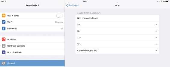 Possiamo impostare una restrizione in base all’età anche per le app sfruttando la classificazione assegnata sull’App Store. È però bene ricordare che non tutte le app presenti sullo Store hanno una classificazione e che queste restrizioni potrebbero non funzionare perfettamente.