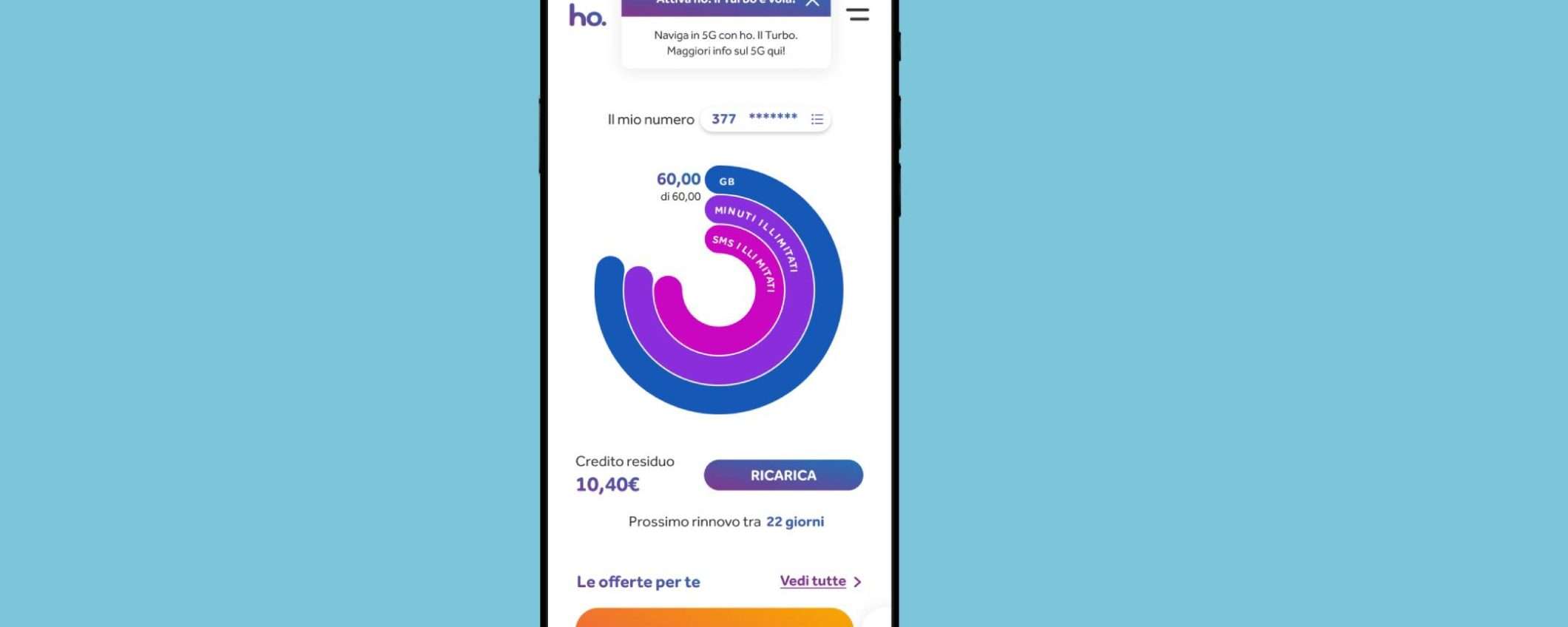 L’offerta di ho. Mobile è disponibile a 9,99€ al mese e include: