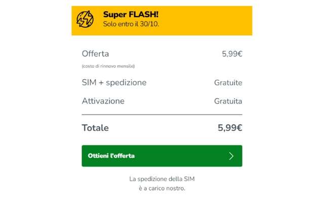 Basta rinunce per avere un operatore telefonico di qualità che ti assicuri una connessione eccellente. Passa a Very Mobile, l’operatore virtuale di WindTre. Attiva qui Super Flash a soli 5,99 euro al mese. Scopri cosa include questo ricco bundle senza sorprese né costi aggiuntivi, ma trasparente e conveniente: