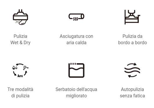 Anche in questo caso si tratta di device senza fili, in grado di funzionare grazie ad una autonomia del tutto sufficiente per grandi superfici. I feedback vocali consentono di sapere in tempo reale lo status del dispositivo, potendone conoscere così la situazione e le operazioni in corso (esempio: “asciugatura completata” o “serbatoio dell’acqua usata pieno”) ed intervenire di conseguenza.