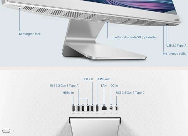 L’immagine qui sopra mostra le tante porte in dotazione: da USB Type-A e Type-C a HDMI, passando per un lettore SD e il jack audio. Oggi puoi acquistare il PC all-in-one di ASUS (modello A34) al prezzo finale di soli 649 euro invece di 999 euro come da listino, grazie allo sconto di 350 euro applicato in automatico.