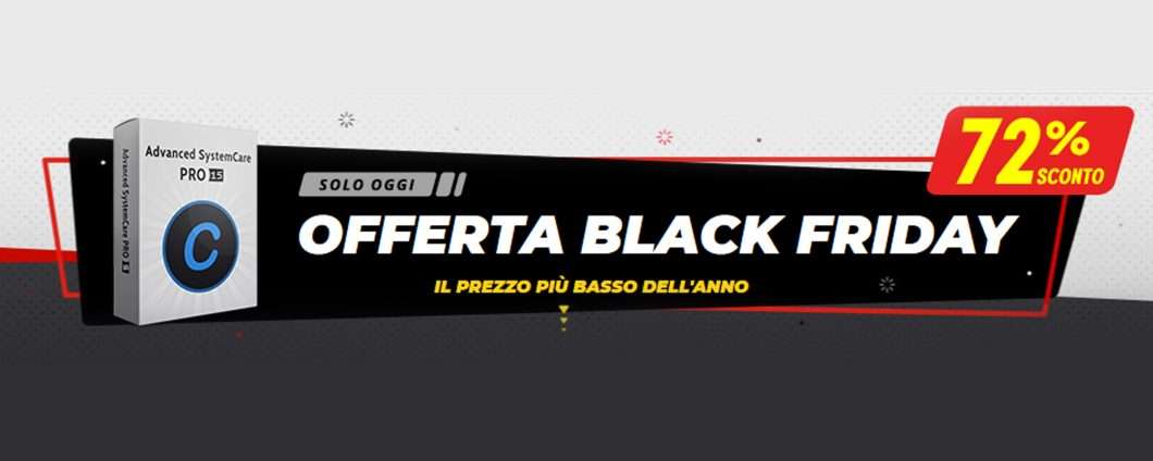 Il Black Friday bussa anche alle porte di IObit e ci regala una super offerta: Advanced SystemCare 15 PRO, software di punta dell’azienda, è scontato a soli 13,99 euro, ovvero il 72%: praticamente il prezzo più basso di sempre. L’abbonamento ha una durata di 12 mesi e supporta fino a 3 PC.