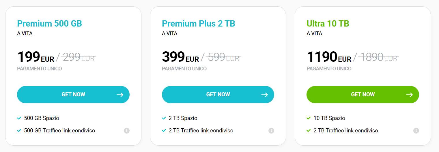 - Ultra 10 TB a vita: 1190 euro (invece di 1890 euro)