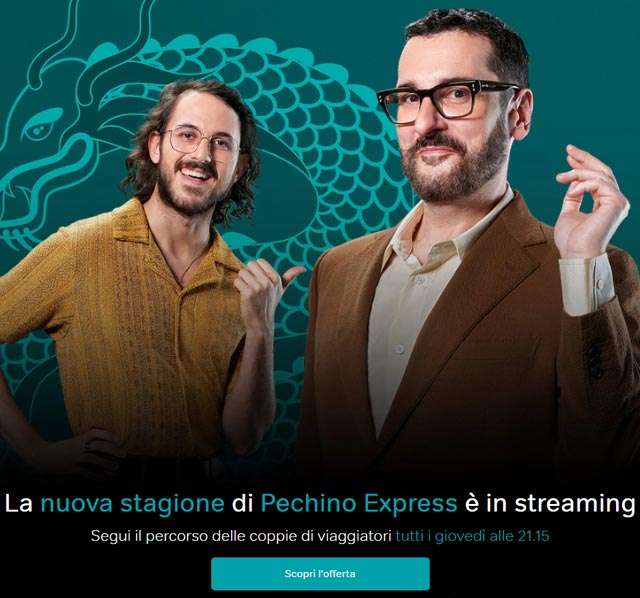 Puoi vedere in streaming le puntate di Pechino Express e tutti gli altri contenuti di NOW con l’offerta speciale che unisce i pass Entertainment e Cinema al prezzo di soli 6,99 euro al mese. Incluse le serie TV internazionali firmate HBO, gli show esclusivi di Sky e i film più attesi con oltre 1.000 titoli on-demand e nuove uscite.