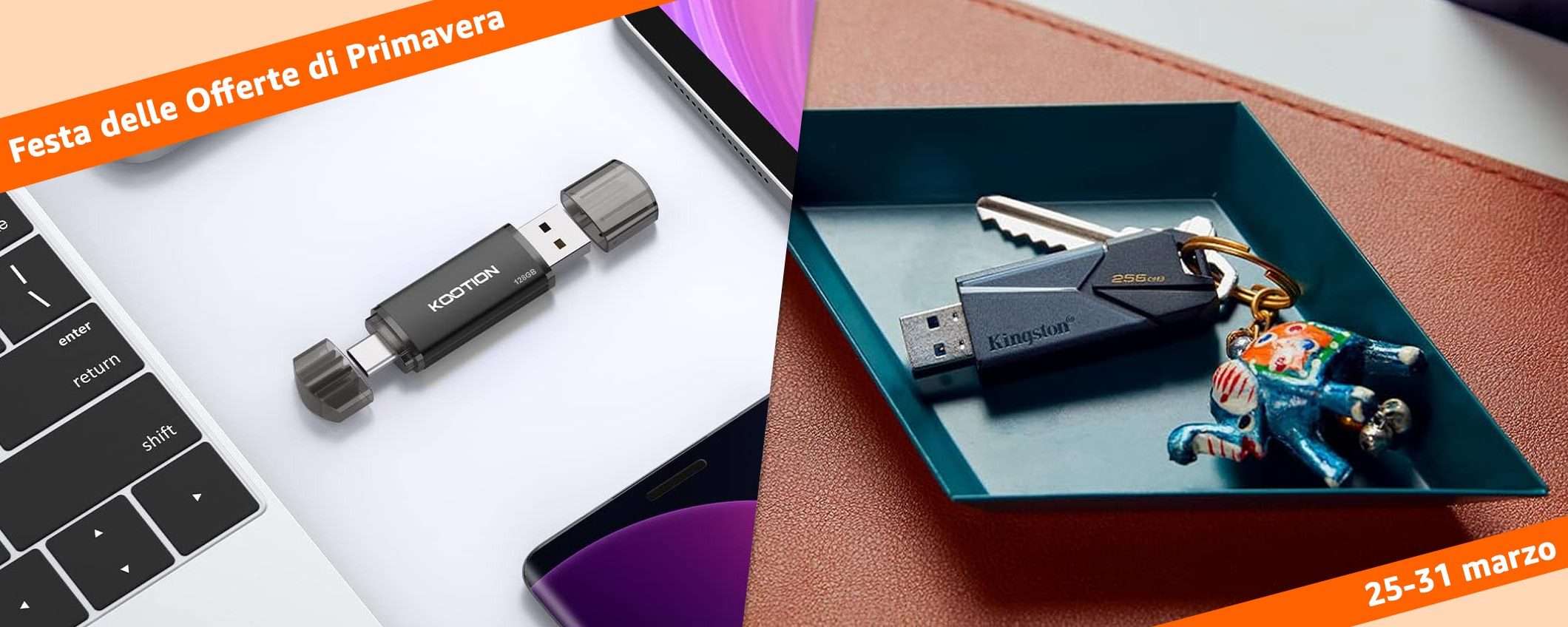 Durante la Festa delle Offerte di Primavera su Amazon (fino al 31 marzo) puoi trovare forti sconti sui dispositivi di ogni categoria, incluse le pendrive. Qui è dove ti segnaliamo i migliori affari di oggi, dai modelli tradizionali e quelli con design 2-in-1 adatti anche per smartphone e tablet.