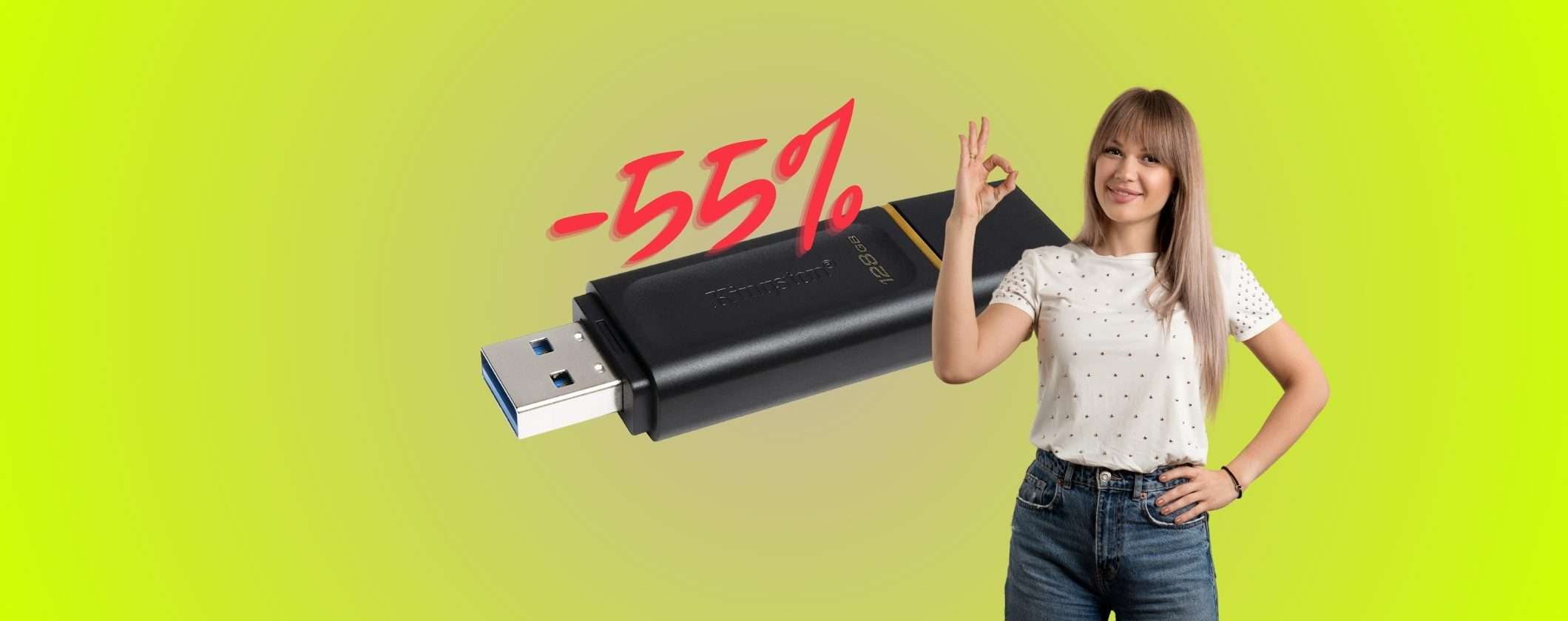 La PenDrive Kingston DataTraveler Exodia DTX da 128GB è semplicemente pazzesca. Trasferimento, scrittura e lettura velocissimi. Un valido elemento da aggiungere alla tua esigenza di storage. Acquistala subito al 55% di sconto su Amazon.