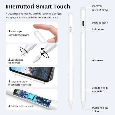La penna touch oggetto di questa offerta è facile da usare e non richiede alcuna installazione o configurazione complicata. Basta accendere la penna e iniziare a usarla sul tuo iPad. Inoltre, la penna è dotata di un’impugnatura ergonomica, progettata per essere confortevole anche dopo ore di utilizzo.