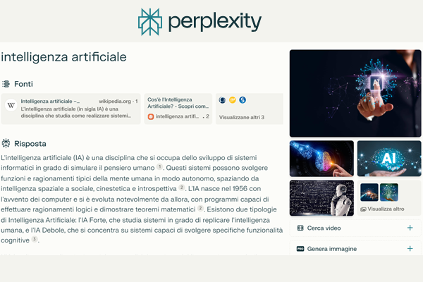 - Visualizzare la risposta di Perplexity AI e le relative fonti;