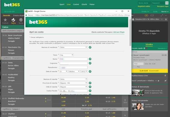 Per fruire del servizio live TV di Bet365 occorre aprire un conto. Inoltre, per poter seguire le dirette il conto deve essere attivo.
