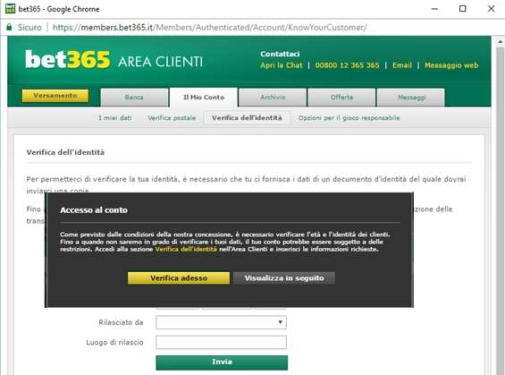 Al primo accesso verrà richiesta la verifica del conto che può essere effettuata tramite l’invio del proprio documento d’identità. Compilati i dati richiesti clicchiamo INVIA ; se non si procede con questa verifica entro un mese il conto verrà sospeso.