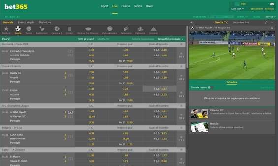 Tra i siti più popolari di scommesse abbiamo testato il portale Bet365 che, rispetto ad altre piattaforme simili (come SNAI, Eurobet o Betaland), offre un’offerta più ampia. Gli utenti che si registrano sul sito e versano un importo minimo sul conto, vengono abilitati alla visione delle partite di Serie A, B, Championship, Bundesliga e Ligue 1. Ma su Bet365, oltre alle partite di calcio si possono seguire in diretta incontri di tennis, basket, pallavolo e tantissimi altri sport. C’è l’imbarazzo della scelta. Per abilitare PC, Smartphone e TV alla visione di tali contenuti bisogna seguire alcuni semplici passaggi. Vediamoli in dettaglio.
