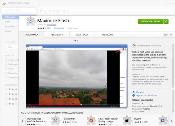 Per vedere l’evento a tutto schermo, invece, Installiamo Maximize Flash per Google Chrome. Al termine dell’installazione prestiamo attenzione alla nuova icona che verrà aggiunta al menu del browser Google. Torniamo sulla home di Bet365 e apriamo il link LIVE .