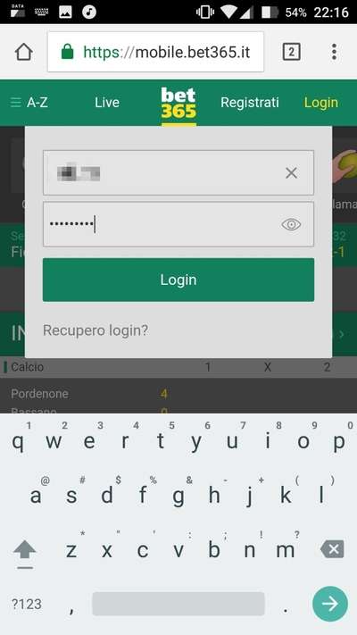 Avviamo Chrome sul dispositivo mobile e colleghiamoci all’indirizzo mobile.bet365.it . Tappiamo su LOGIN in alto a destra e inseriamo i nostri dati di accesso nel popup a seguire. Al termine tappiamo su LOGIN .