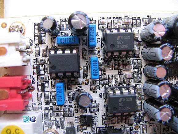 Il 5532 è un progetto di alcuni anni fa, che aveva all’epoca caratteristiche di elevata qualità, soprattutto per quanto riguarda la distorsione e il rumore di fondo, davvero bassissimi. A causa anche del costo molto contenuto del chipset ha avuto un notevole successo ed è facile trovare il 5532 realizzato da produttori diversi. I più noti rimasti sul mercato sono JRC e appunto Fairchild. Si tratta quindi tutto sommato di un componente di qualità medio/alta, che abbiamo incontrato anche in altre schede prosumer, come ad esempio la M-Audio 192.