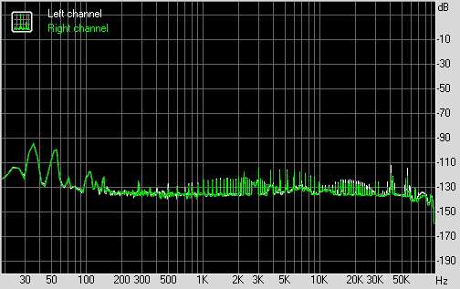 A fronte di tutto questo inoltre possiamo osservare, nei tre grafici del Dynamic Range, del Noise Level e del Total Harmonic Distortion, dei picchi irregolari nella banda degli alti, tra i 30 e i 60 kHz, nonchè un andamento eccessivamente irregolare per quanto riguarda lo Stereo Crosstalk. Un comportamento anomalo, poiché la nostra piattaforma di test, cavi compresi, è sempre la stessa delle precedenti schede audio testate e non è nemmeno la prima volta che ci troviamo di fronte al DAC AKM 4396 o all’OpAmp 5532, che però in passato ci hanno fornito ben altri risultati.