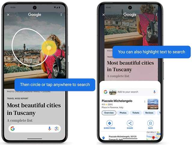 La prima è Cerchia e Cerca e arriverà il 31 gennaio. Il nome scelto è di per sé piuttosto esplicativo per capirne l’utilità: permette di trovare facilmente e velocemente informazioni su tutto quanto mostrato dallo schermo, senza bisogno di cambiare app. È sufficiente un tap prolungato sul tasto home o sulla barra di navigazione per poi cerchiare, evidenziare, scarabocchiare o toccare ciò che si vuol rendere l’oggetto della ricerca.