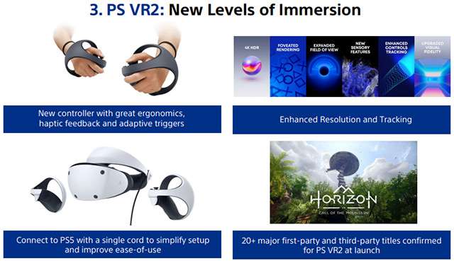 Un documento condiviso dal gruppo con gli investitori (PDF) fa luce anzitutto sulla line-up dei giochi che ne accompagneranno il debutto: saranno più di 20. Uno di questi prende il nome di Horizon Call of the Mountain, spin-off della serie che nei mesi scorsi ha visto debuttare il capitolo Forbidden West. A occuparsi dello sviluppo anche software house di terze parti.