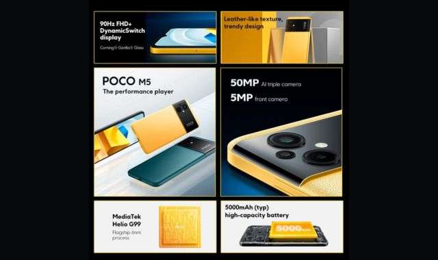 POCO M5 è uno smartphone che non rinuncia a nulla dal punto di vista della tecnica, a cominciare dal display DynamicSwitch a 90 Hz da 6,43 pollici, un processore MediaTek Helio G99 ottimizzato anche per il gaming, una fotocamera tripla con intelligenza artificiale da 50 MP e una batteria da 5000 mAh con ricarica rapida da 18W.