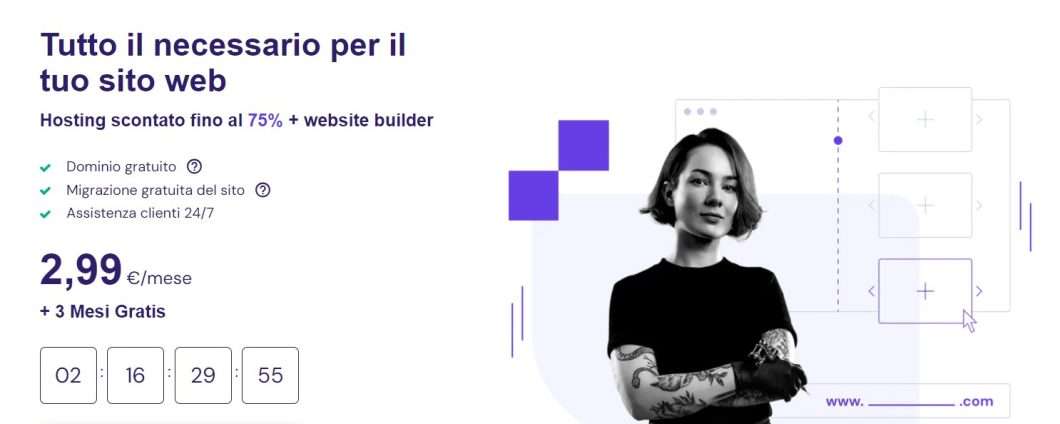 Vuoi iniziare la tua avventura nel mondo digitale lanciando il tuo sito web? Il provider hosting a cui devi affidarti è Hostinger. Qualità e sicurezza, ma anche vantaggi economici, vista l’attuale offerta a 2,99 euro al mese (sconto del 75%).