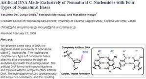 Nella corso della loro ricerca, Inouye e i colleghi dell’ Università di Toyama dichiarano di essere riusciti a produrre un DNA artificiale stabile : “La chimica unica di queste strutture e la loro stabilità offrono possibilità mai viste sinora per lo sviluppo di nuove biotecnologie e applicazioni”, spiega il gruppo.