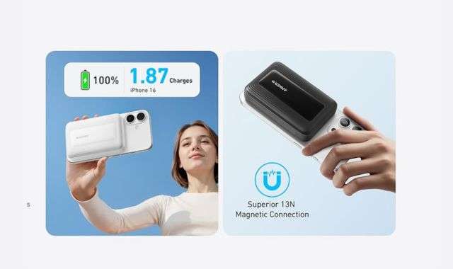 Il power bank sfrutta la ricarica wireless magnetica da 7.5W con iPhone: ti basterà appoggiarlo sulla parte posteriore di un melafonino dalla serie 13 in su per iniziare subito la ricarica. In alternativa, così da poterlo utilizzare anche con altri dispositivi, hai il cavo USB-C per sfruttare la potenza massima di 30W e dunque completare la ricarica in pochissimo tempo.