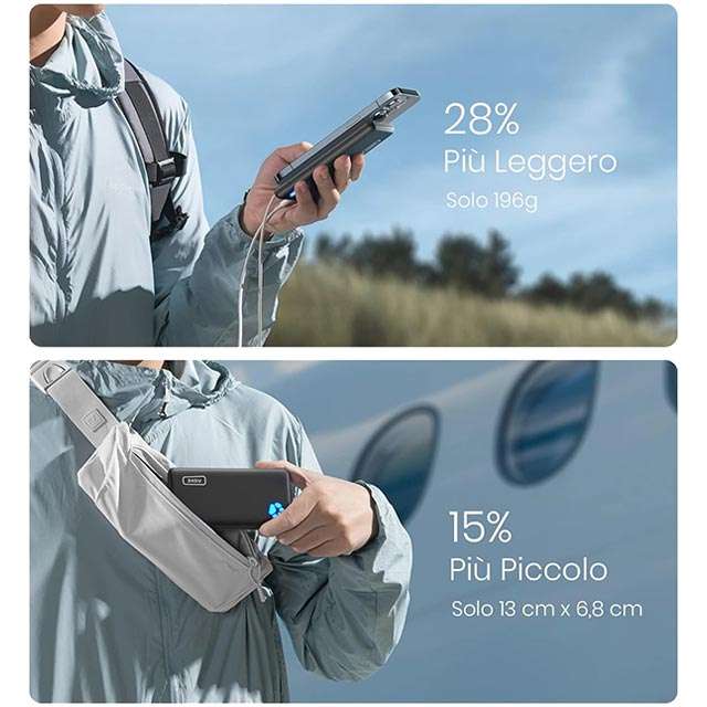 Può tornare utile per ricaricare smartphone, tablet, auricolari, smartwatch e qualsiasi altro dispositivo tecnologico. È dotato di una porta USB-C utilizzabile sia in ingresso che in uscita oltre a due altre USB-A. Tra i punti di forza vale la pena segnalare il design ultrasottile con uno spessore di soli 1,5 centimetri. La sicurezza è garantita dall’impiego del sistema SmartProtect che interrompe ogni operazione in caso di anomalia. Puoi trovare altre informazioni nella pagina dedicata sull’e-commerce, dove l’articolo ha ricevuto più di 50.000 recensioni positive con un voto medio molto alto, superiore a 4/5 stelle.