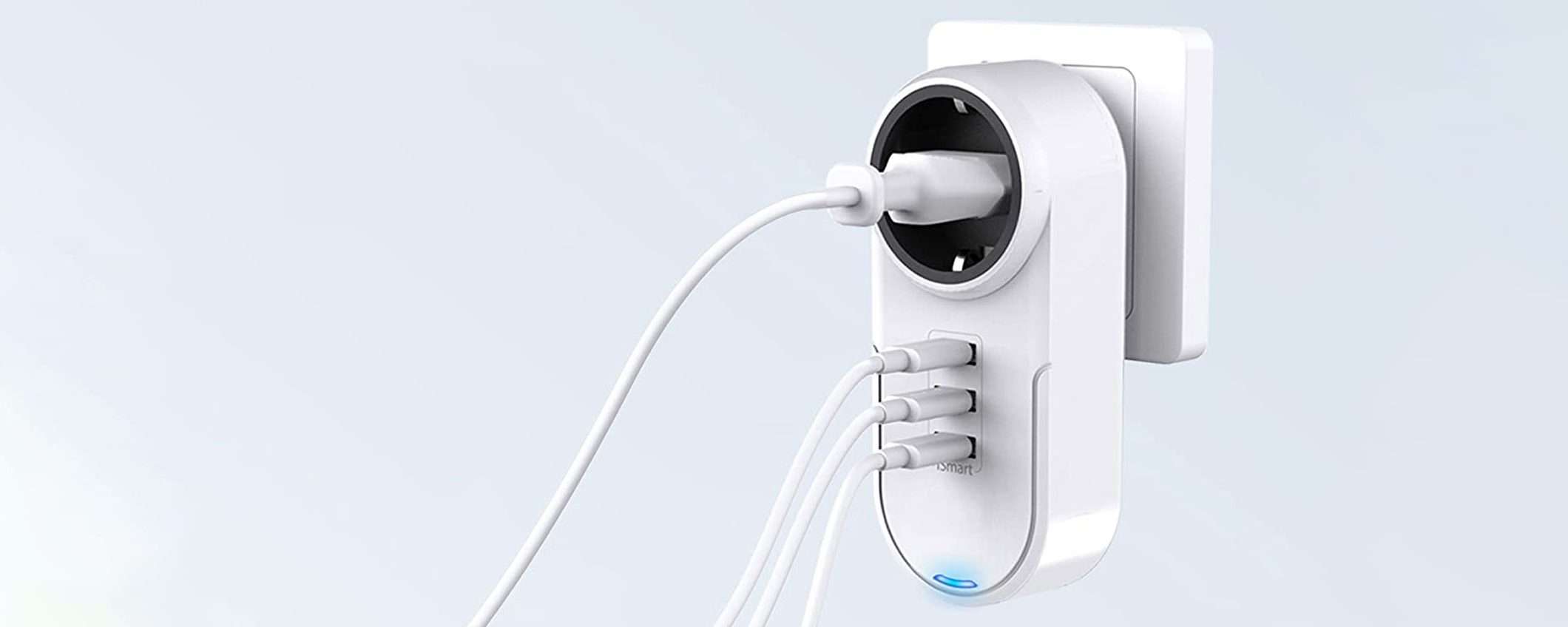 Ci puoi collegare il portatile, lo smartphone, il tablet e il powerbank, tutti insieme: oggi questa presa 4-in-1 è proposta su Amazon con un coupon sconto del 60%, lo devi solo attivare. E se la compri subito, la riceverai domani per poterla mettere sotto l’albero.