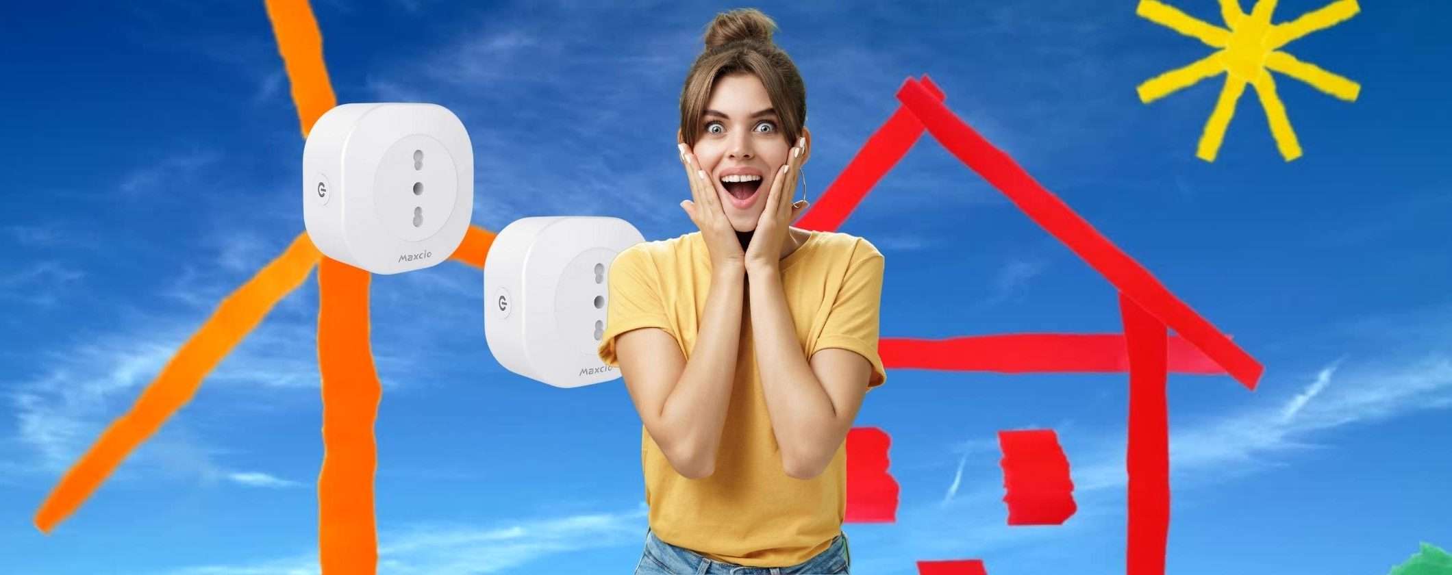 Con soli 16,49 euro ottieni2 prese intelligenti WiFi Maxcio che potrai destinare ad altrettanti dispositivi che desideri gestire tramite comando vocale. Un’ottima idea è quella di acquistarne un po’ di più, approfittando di questo sconto speciale attivabile tramite il coupon.