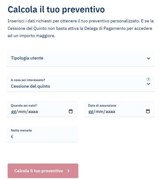 Infine, è sufficiente inserire il netto mensile e scegliere il numero di mensilità della propria busta paga. Premere quindi sul pulsante Calcola il tuo preventivo per finalizzare la domanda.